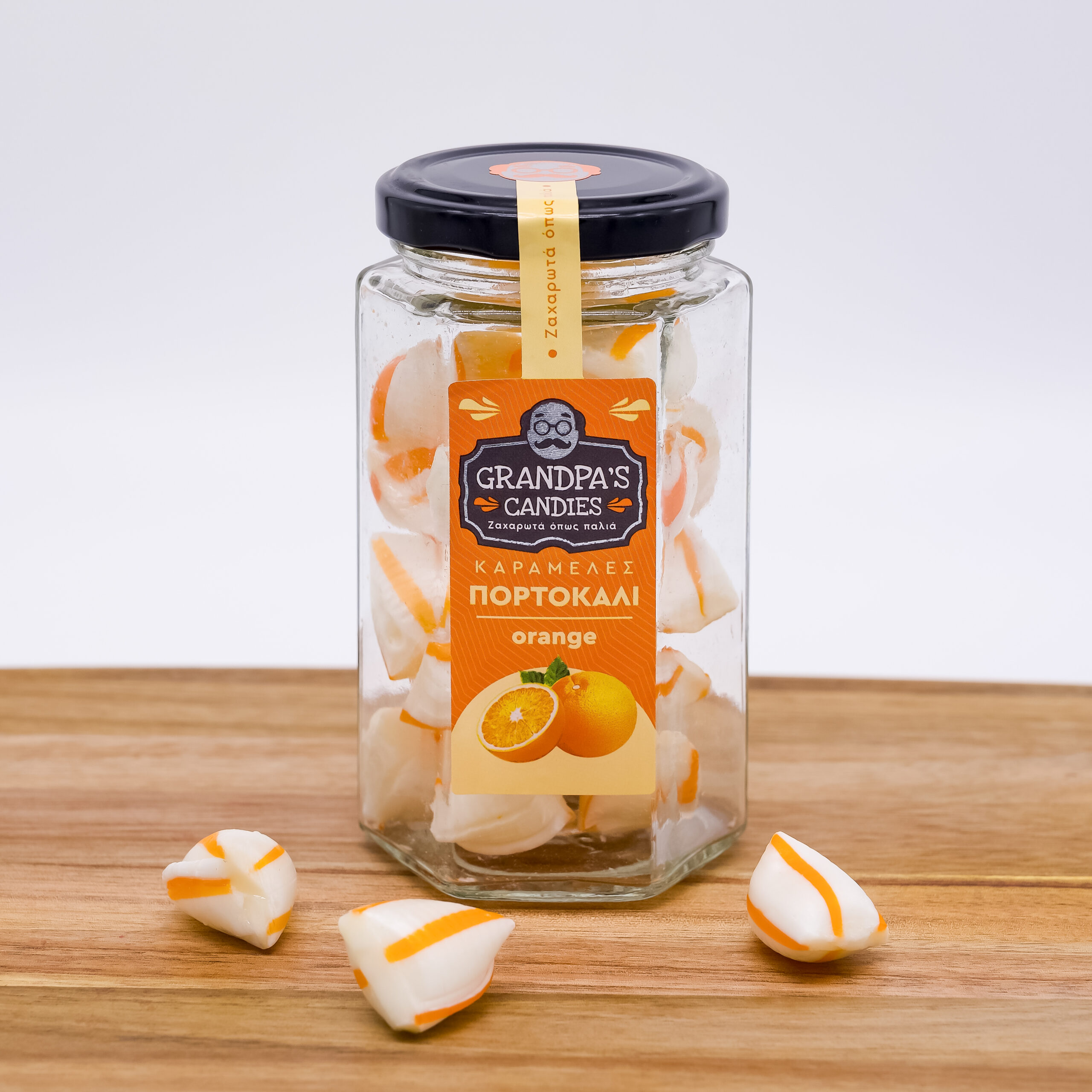 Καραμέλες Βαζάκια Γυαλιστερές με γεύση Πορτοκάλι